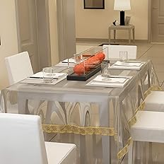 Buy Casanest Thick Pvc Golden Lace Waterproof Rectangular Dining Table Cover 8 Seater 60x108 Inches Transparent Trans004 Online At Low Prices In India Amazon In
