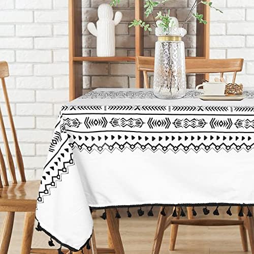 Amazon Com Boho Tassels Tablecloth For Dining Table Farmhouse Rectangle Kitchen Table Cloth Rustic Coffee Table Cover Geometric Cotton Linen Washable Small Table Cloths For 6 To 8 Seats Bohemian 55x86 Inch